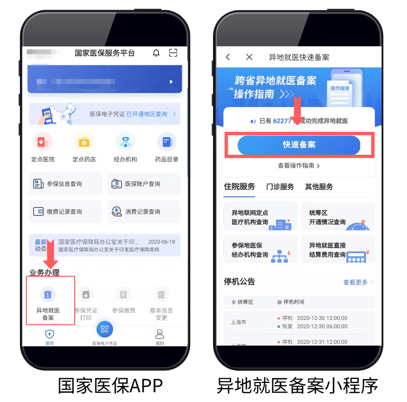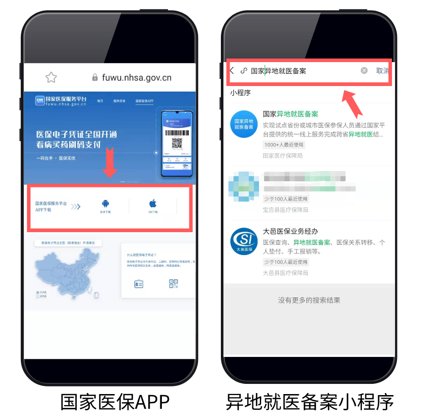 第一步:下载“国家医保服务平台”APP或通过微信搜索“国家异地就医备案”小程序。
